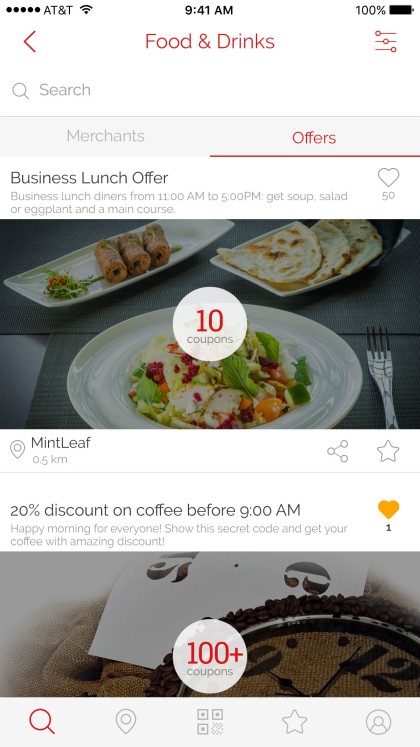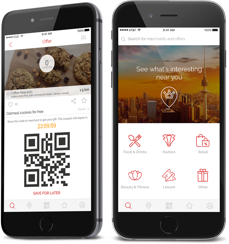 After you grab the offer it will be available on your account. Easily redeem your offer by showing the offer's QR-code to the merchant..